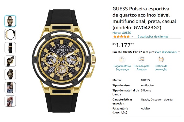 Guess Pulseira Esportiva, Quartzo, Caixa Aço Inoxidável, Casual 27.